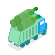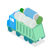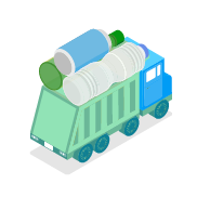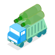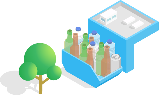 ここは、みんなが飲み終わったペットボトルやカン、びんを集めて、もう一度使えるように分けている工場だわ!大きな機械が、カンはカン、ペットボトルはペットボトルって、自動で分けてくれるのよ!